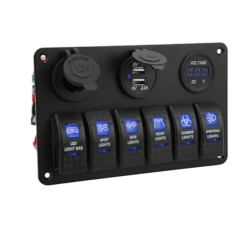 ABS防水LEDマリンボートロッカースイッチパネル6ギャングカーマリンスイッチ充電器パネル