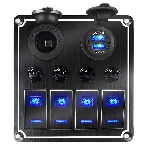 防水プリワイヤード12V 24V 4ギャングロッカースイッチパネルUSBシガレットソケットとダブルアンダーソンプラグ付き