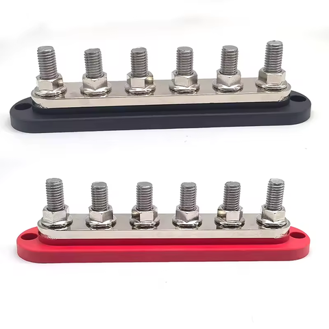 เทอร์มินัล6แท่งแบตเตอรี่สำหรับ150A เทอร์มินัลบล็อกการกระจายพลังงานสีแดงสีดำสำหรับยานยนต์ทำจากพลาสติกทองแดงโพลีเอสเตอร์